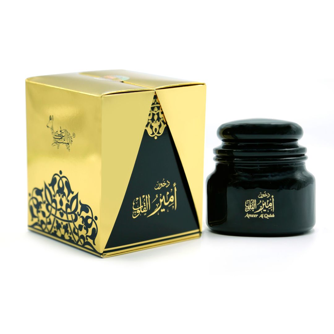 Dhukhoon Ameer Al Qulub. A blend of concentrated oriental and French perfumes, mixed with fine oud powder and the finest types of musk and amber. The initial scent takes you to the world of french flowers and perfumes. Then the scent harmonizes between the oriental fragrances of rose and amber with the fragrance of Musk and oud…!