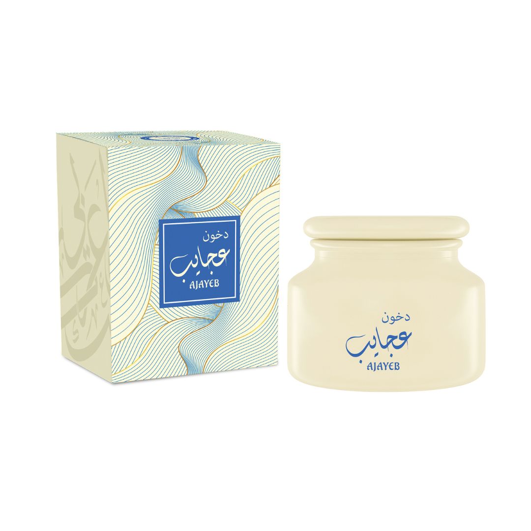 Dhukhoon Ajayeb is a rich and captivating fragrance that begins with the lively freshness of Lemon and aromatic Sage. The heart reveals a warm blend of Praline, Cinnamon, Tolu Balsam, and Black Cardamom, adding a touch of sweetness and spice. The scent settles into a deep base of Patchouli, Brazilian Rosewood, and Black Amber, leaving a smooth and luxurious aroma that beautifully fills the space.