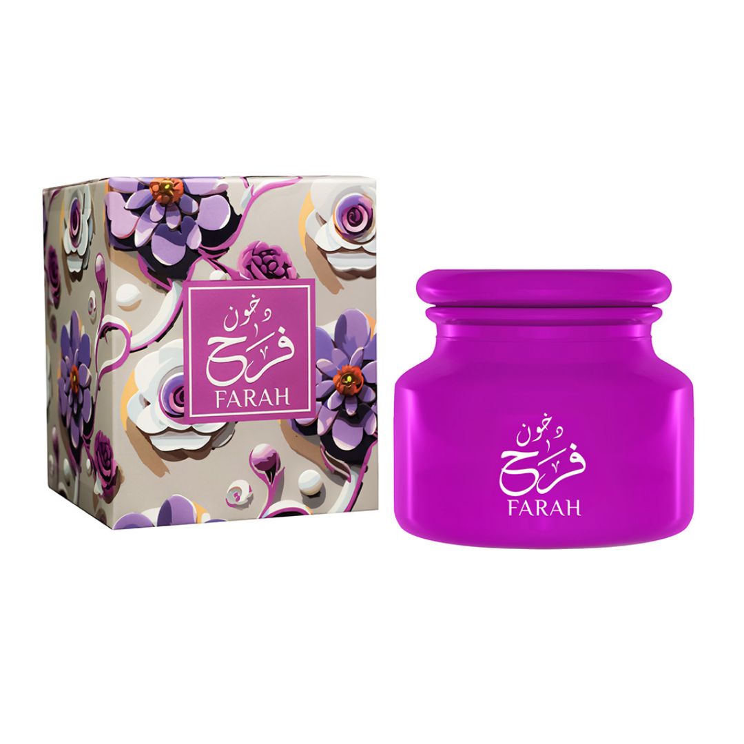 Dhukhoon Farah opens with a radiant blend of Bergamot, Saffron, and Lemon, giving the fragrance a bright yet luxurious start. The heart reveals an elegant combination of Black Rose, Truffle, and delicate floral notes, adding depth and richness. The scent settles into a warm base of Patchouli, Vanilla, and Oakmoss, creating a smooth and sophisticated aroma.