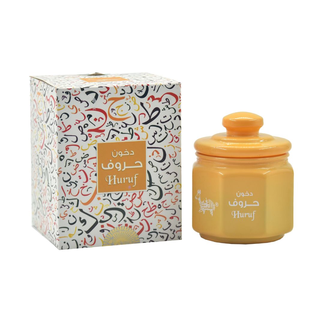 Dhukhoon Huruf opens with an aromatic blend of Geranium, Rosemary, and Aldehydes, giving the fragrance a fresh and vibrant introduction. The heart reveals a distinctive touch of Kewra and Saffron, adding a rich oriental character. It settles into a deep base of Cypriol, Sugary Musk, and Leather, creating a warm and powerful aroma with a strong Arabic presence.